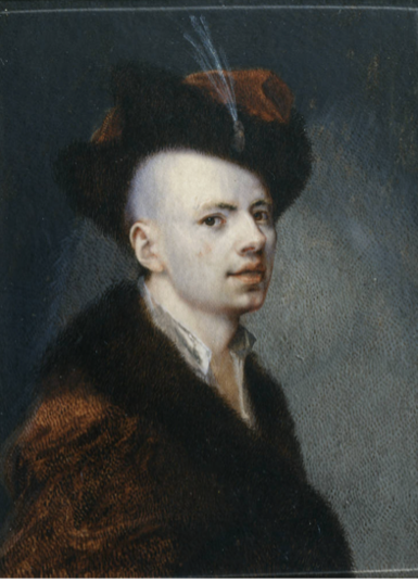Certainly, in comparison to some of her portrait miniatures of men, including that of an unknown man in the Metropolitan Museum (no. 49.122.2), and the portrait of Christoffel Bernhard Julius von Schwartz in the Rijksmuseum (SK-A-4032), this portrait has more depth and intrigue. It is also more unique in providing an object through which, at the time, this gentleman would be more easily identified. Other miniatures of gentlemen by Carriera have similar objects of intrigue, such as the snuff box held by the gentleman in her portrait identified as the Young Pretender[15], but these are nowhere near as common as they are in both miniatures and pastels depicting female sitters.