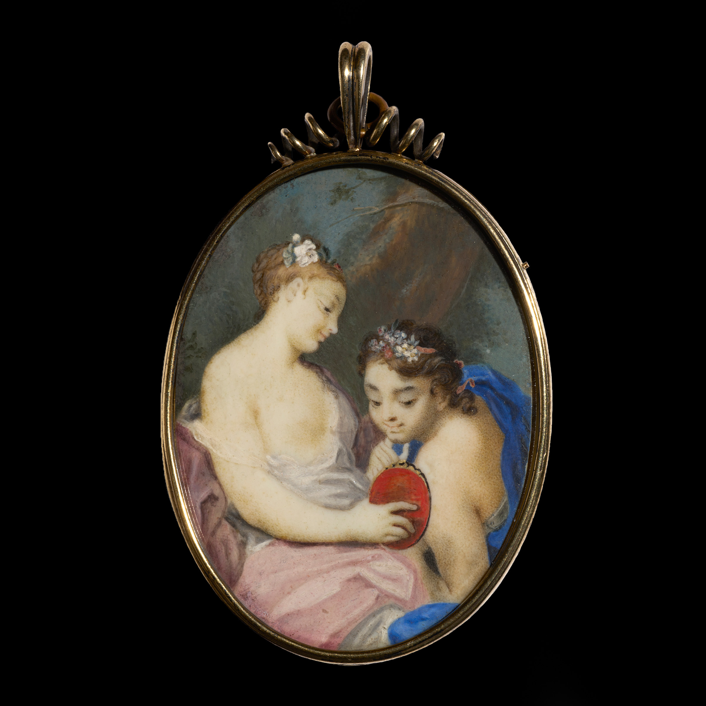 Fig. 5: ROSALBA CARRIERA (1673-1757), Rinaldo and Armida, circa 1715, watercolour and bodycolour on ivory, associated silver frame, oval, 3 1/8 x 2 3/8 in (8 x 6 cm).