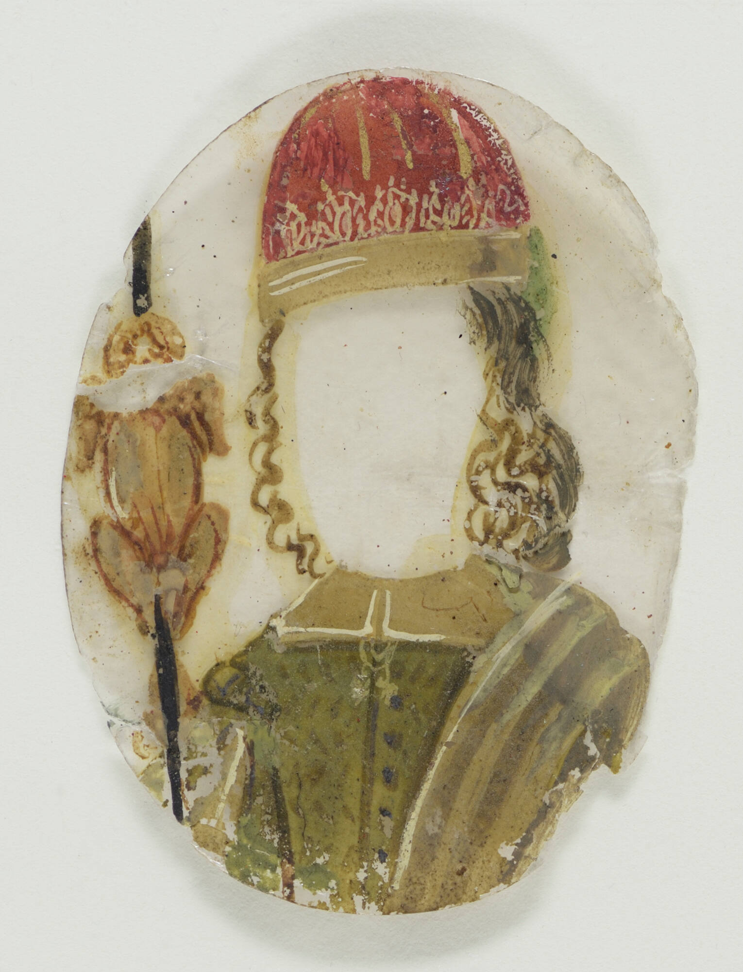 Fig. 6: A talc overlay from DUTCH, Portrait Miniature with Twenty-Three Costume Overlays, 1630-1700, oil on copper with painted mica overlays, Isabella Stewart Gardner Museum, Boston, U18e124.a-x.Conclusion