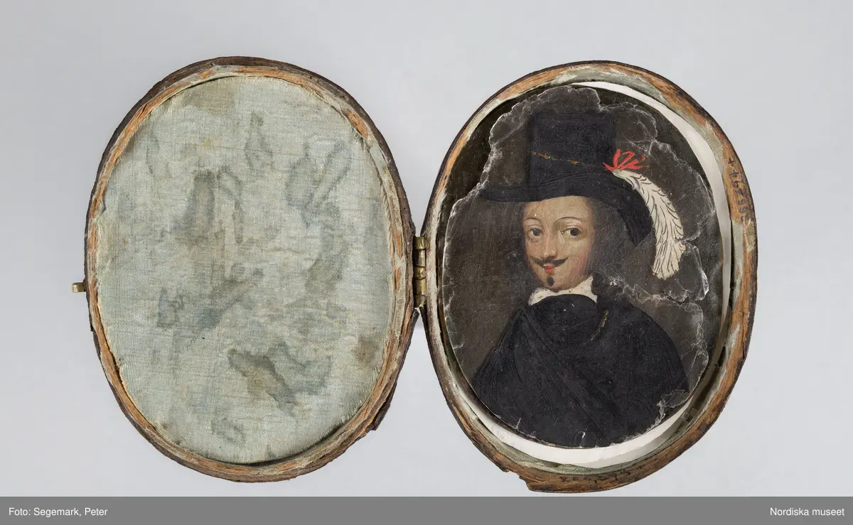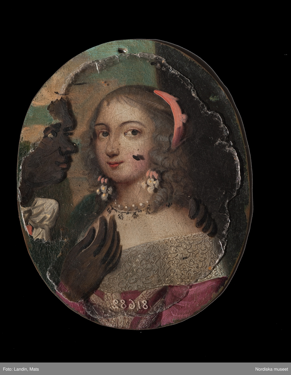 Fig. 3. Miniature portrait of Queen Kristina of Sweden with an overlay, oil on copper with thirteen mica talc overlays, Nordic National Museum, Stockholm, identifier NM.0266394+.
